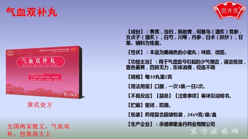 产品卖点:三家批文,气血双补